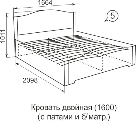 Кровать двойная на 1600 мм (латы) №5
